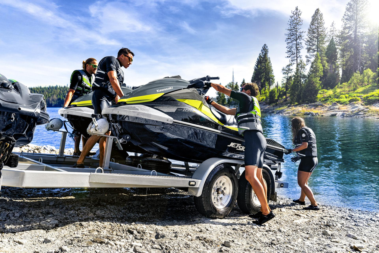 Het Kawasaki Smart Steering-systeem ondersteunt de bestuurder wanneer het gas bij hoge snelheid snel wordt losgelaten. Hierdoor blijft de Jet Ski beter bestuurbaar, wat vooral beginnende rijders helpt bij het leren manoeuvreren op het water.