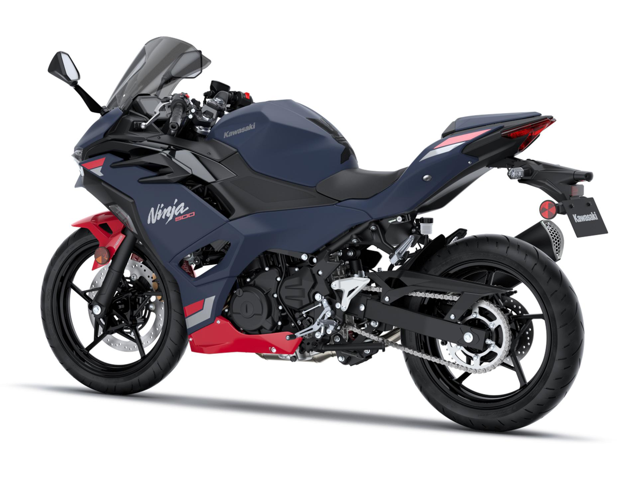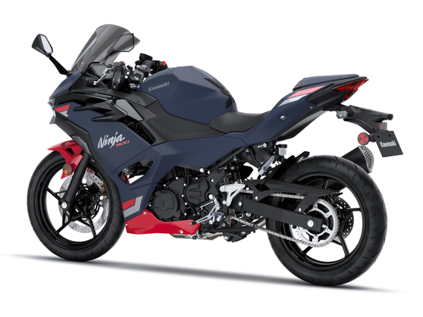 Van elke hoek is duidelijk dat de Ninja 500 een volwaardig lid is van de Ninja-familie. De scherpe voorkant en de strakke, gestroomlijnde lijnen geven hem een race-geïnspireerde, volwassen uitstraling. De volledige kuip creëert een gevoel van eenheid tussen rijder en motor.