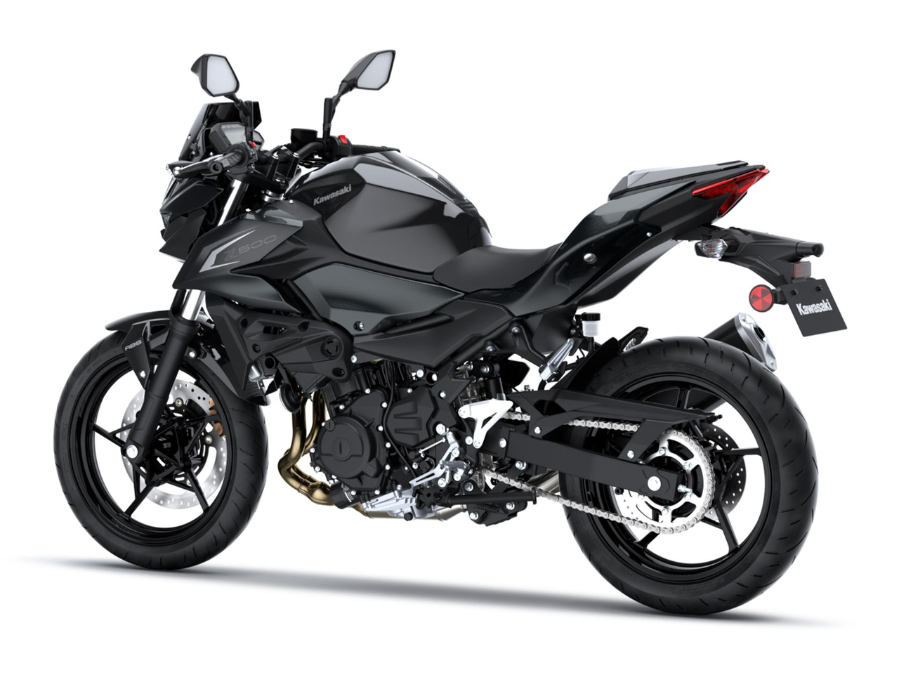 Vanuit elke hoek is duidelijk dat de Z500 een volwaardig lid van de Z-familie is. De drievoudige koplamp en agressieve lijnen zorgen voor een krachtige Supernaked-uitstraling en een sterke street presence.