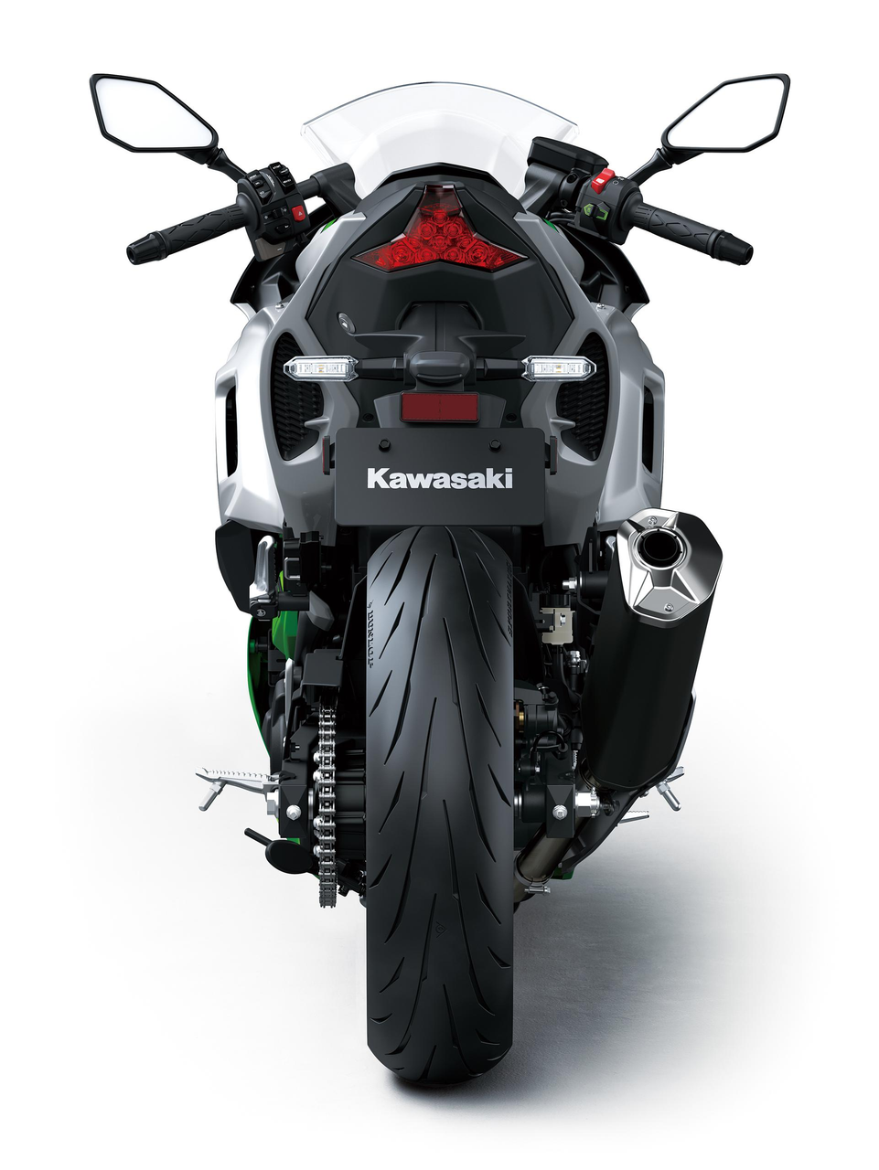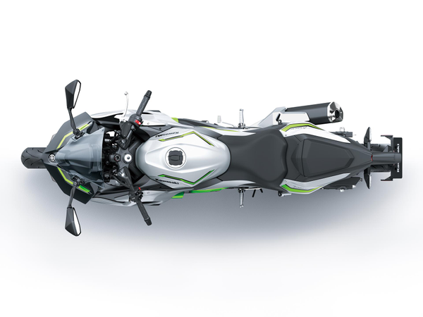 De combinatie van Silver en Lime Green met een halfmatte afwerking geeft de Ninja 7 Hybrid een frisse, futuristische uitstraling. De kleur- en graphicset benadrukt zijn rol als nieuwe generatie Kawasaki HEV-model.