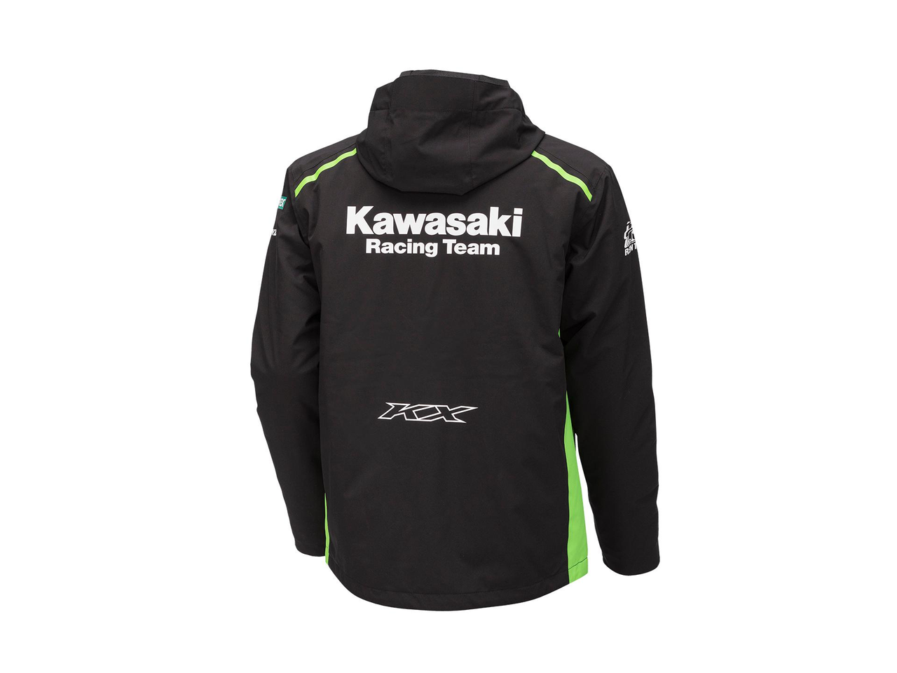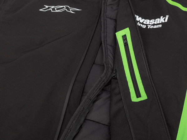 Kawasaki MXGP replica 2-in-1 jas met uitneembare thermovoering, getapete naden, binnen- en buitenzakken met rits, stretch binnenmanchetten en sponsorlogo’s. 96% polyester, 4% elastaan.