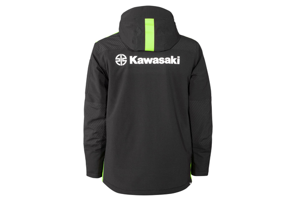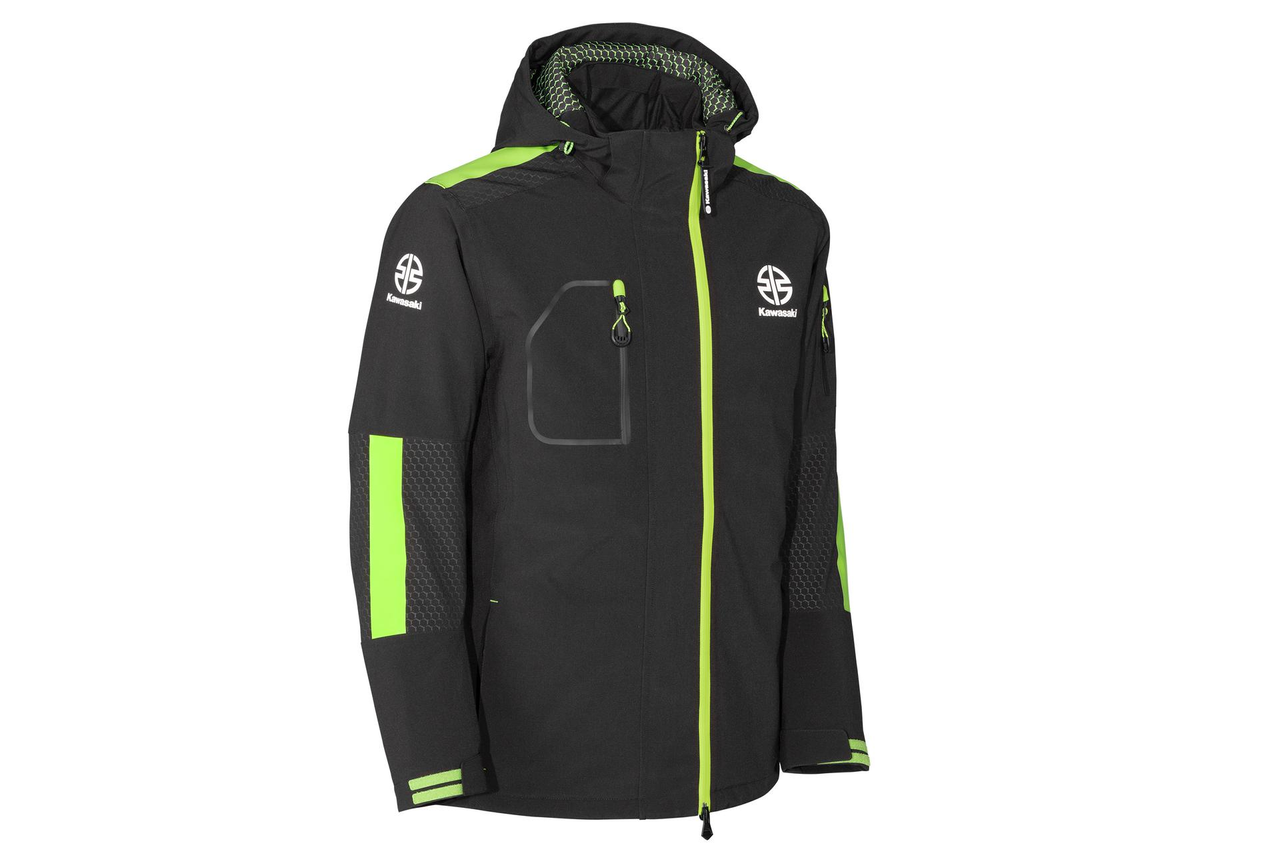 Waterafstotende gewatteerde jas met afneembare capuchon. Getapete naden, hexagon-quiltvoering, dubbele ritssluiting, groene details, 96% polyester/4% spandex, TPU-membraan WP 8000 mm/BRP 3000 mm.