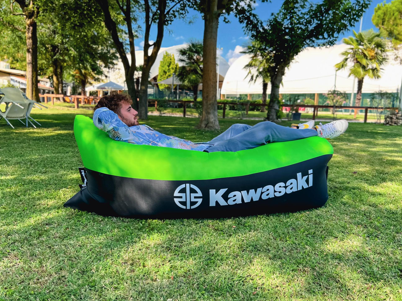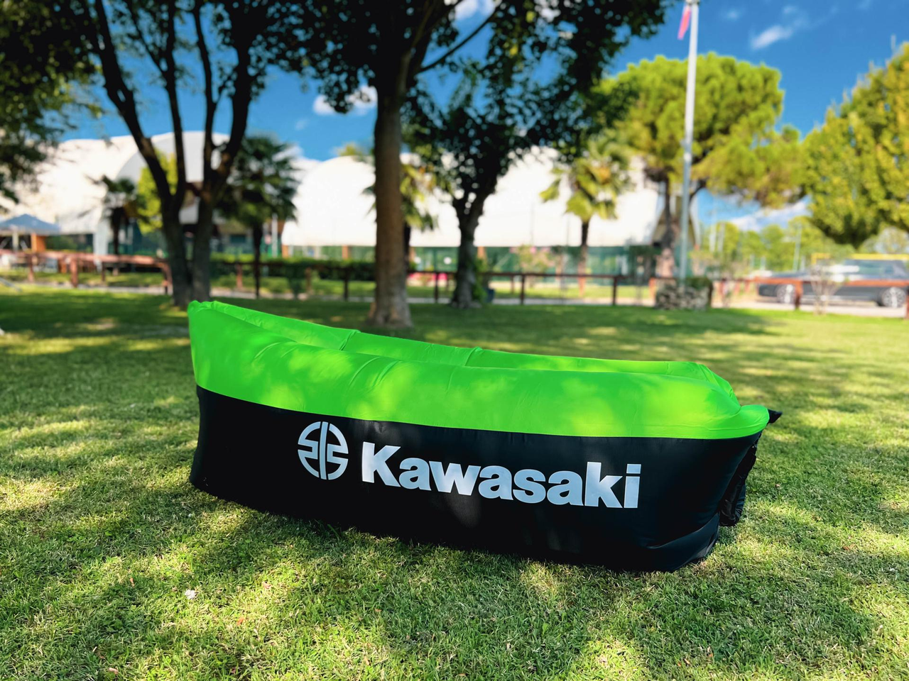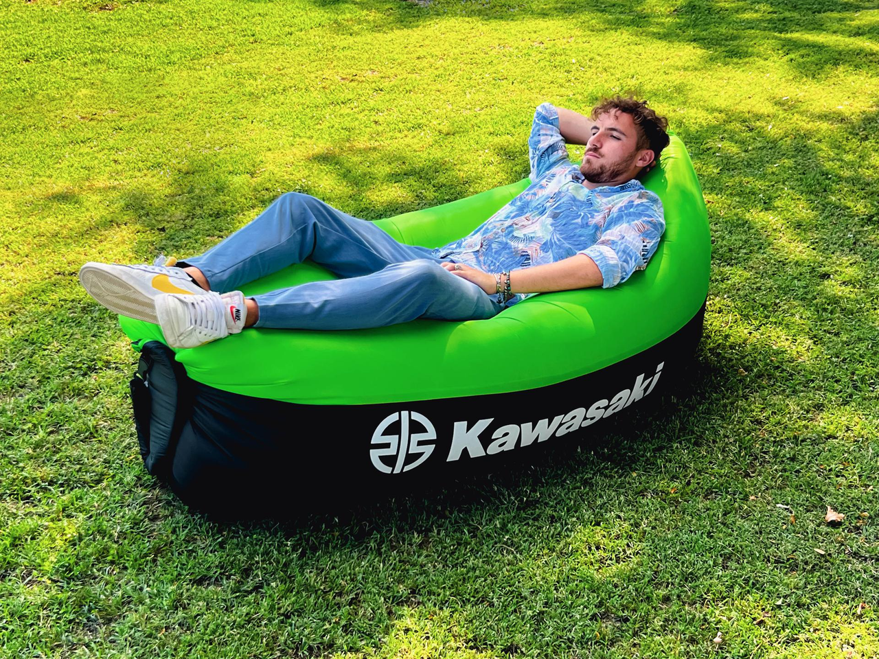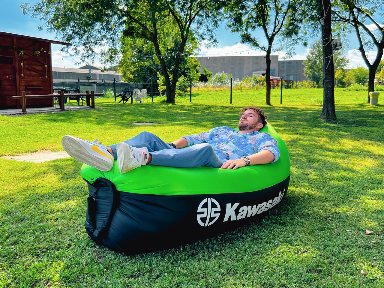 Compact opblaasbaar ligbed met handige draagtas. Gemaakt van ripstop-stof en op te blazen met natuurlijke luchtcirculatie.