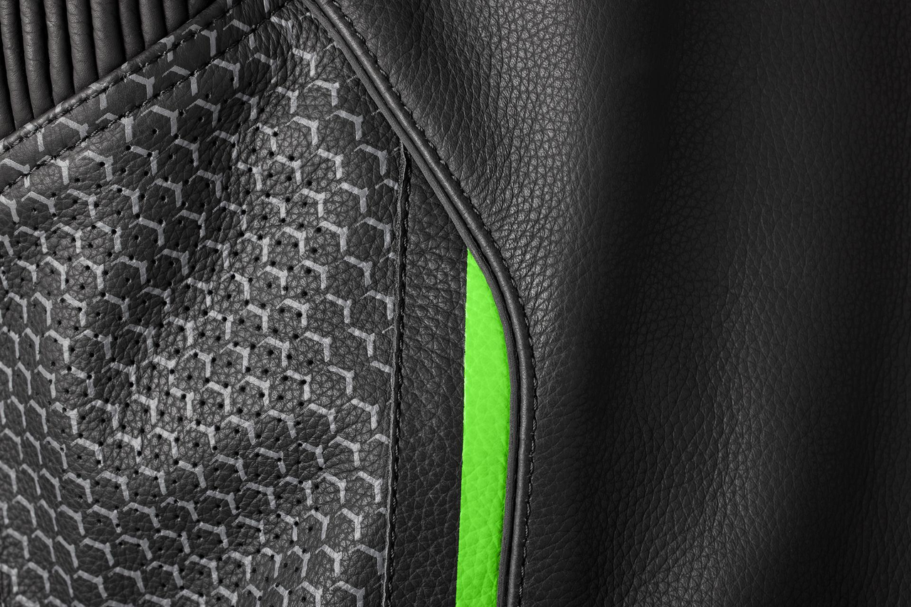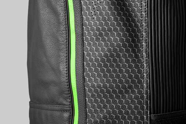 RIMINI II lederen sportjas met AAA-certificering. Volnerfleer, geperforeerde panelen, uitneembare thermovoering, CE Level 2 rugprotector en CE Level 1 schouder- en elleboogprotectie. Verstelbaar, met stretchpanelen en ventilatie.