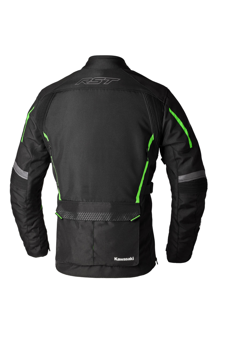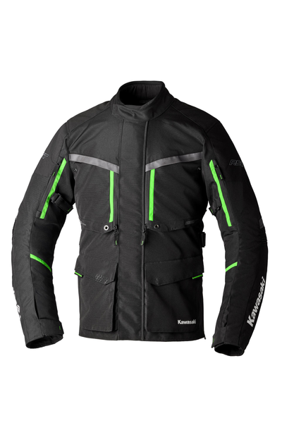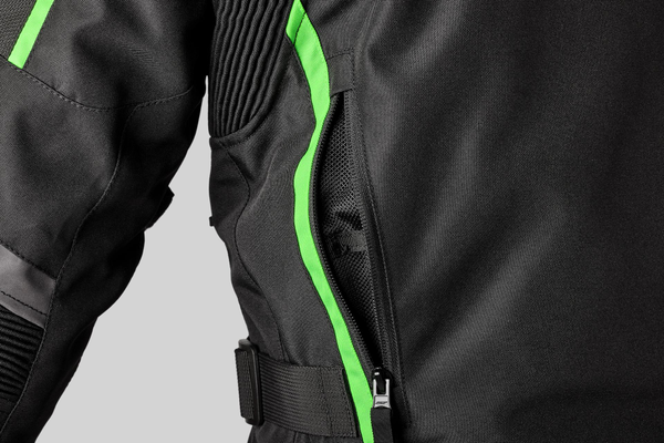 TRIER Textieljas met MaxTex buitenlaag, CE-A, Level 1 protectie (rug, schouder, elleboog). Uitneembare SinAqua waterdichte voering en uitneembare thermovoering voor veelzijdige configuratie. Stretchpanelen, verstelpunten en ventilatiezones. MAX-ritsen, 360° verbindingsrits, meerdere opbergvakken en vaste kaartzak.