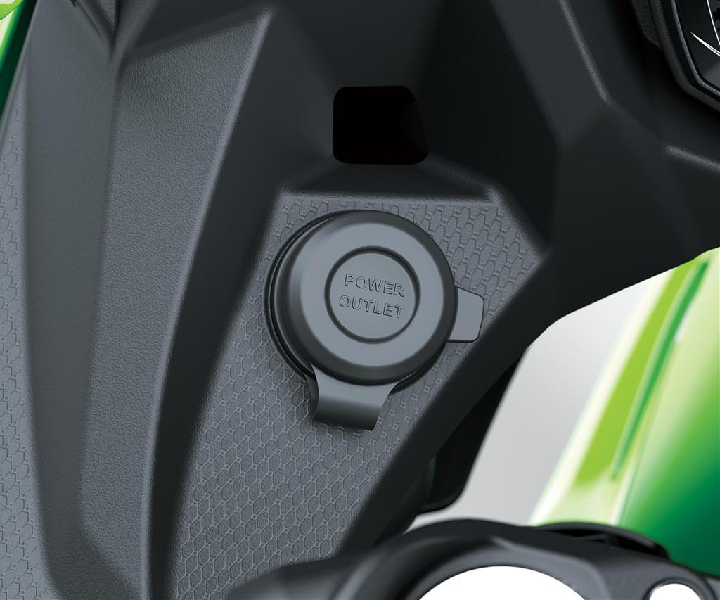 12-volt DC-stroomaansluiting met afdekkap voor montage in het dashboardpaneel. Kan rechtstreeks op de kabelboom van de motor worden aangesloten. Een relaiskit is vereist en wordt afzonderlijk verkocht.