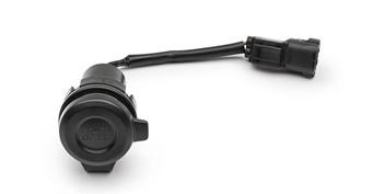 12-volt DC-stroomaansluiting met beugel en afdekkap voor een op maat gemaakte montage in het instrumentenpaneel van de Z900. Geschikt voor zowel de standaard meter cover als de grotere meter cover.