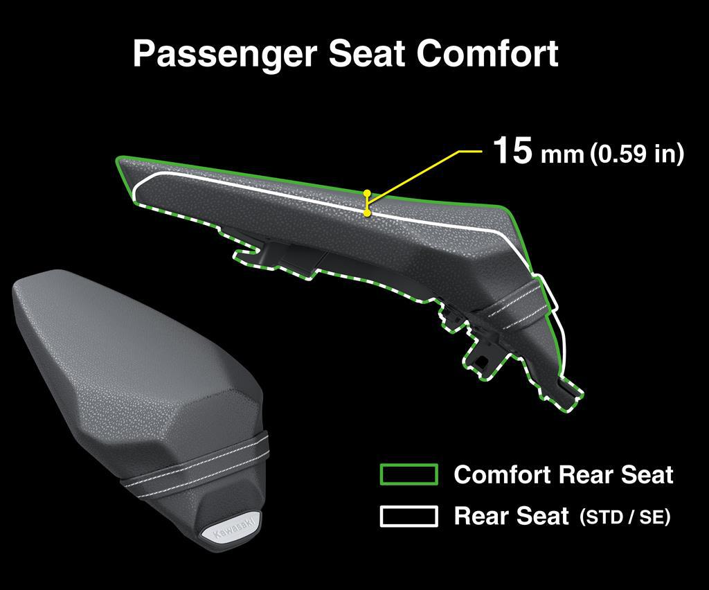 Speciaal ontworpen voor de Z900: dit zadel verhoogt het rijcomfort. Aluminium Kawasaki-logo, 15 mm hoger dan standaard, inclusief alle onderdelen ter vervanging van het originele zadel.
