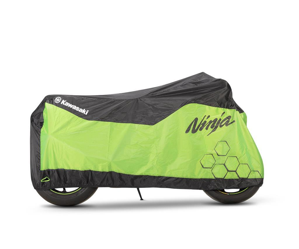 Motorhoes van Honeycomb ripstop, hittebestendig tot 120 °C. Subtiel Kawasaki-design. 100% polyester, met multifunctionele opberg-/draagtasje. Geschikt voor: Ninja 125/400/650, Ninja 1000SX (zonder koffers), Ninja H2 SX/SE (zonder koffers), Ninja ZX-4R/RR, ZX-6R, ZX-10R/RR.