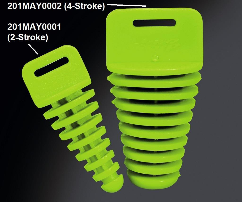 Flexibele groene uitlaatplug voor bescherming tegen water tijdens wassen of opslag. Small: 15–40 mm uitlaatdiameter. Big: 33–61 mm uitlaatdiameter.